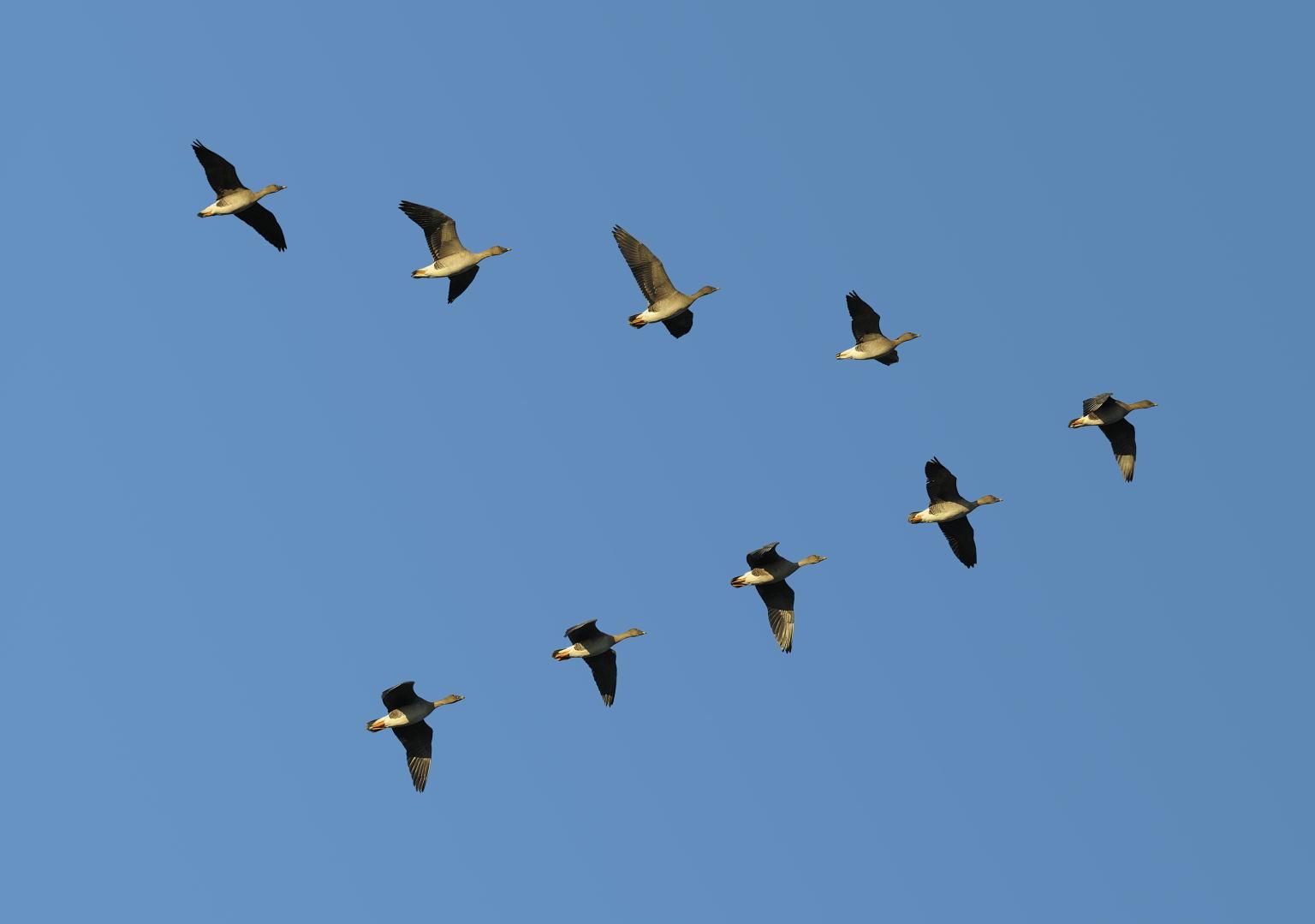 Elke gans is toegewijd aan de groep en de lange vlucht, ze laten ons niet afleiden
